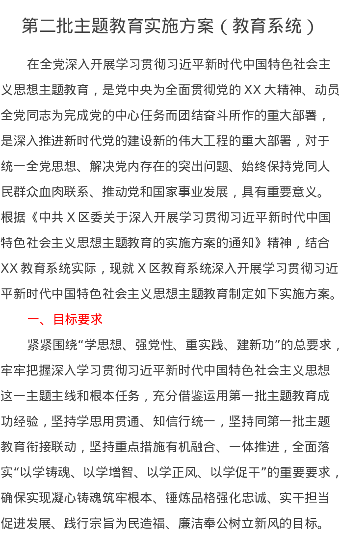 第二批主题教育实施方案(教育系统)特色社会主义思想