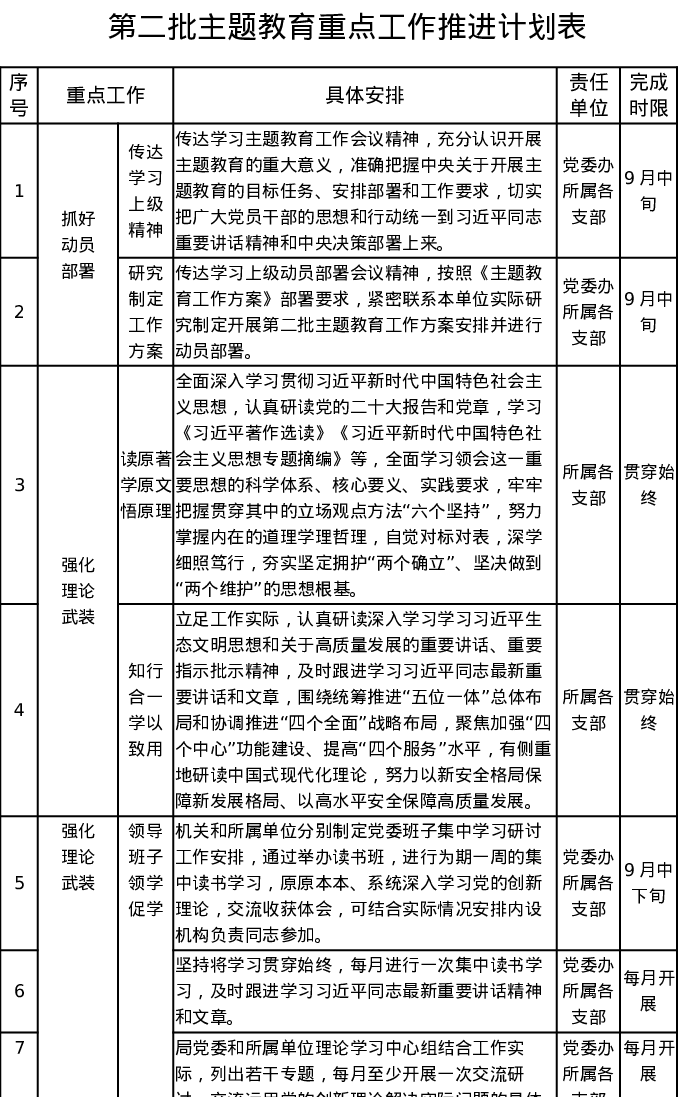 第二批主题教育重点工作推进计划表(特色社会主义思想)