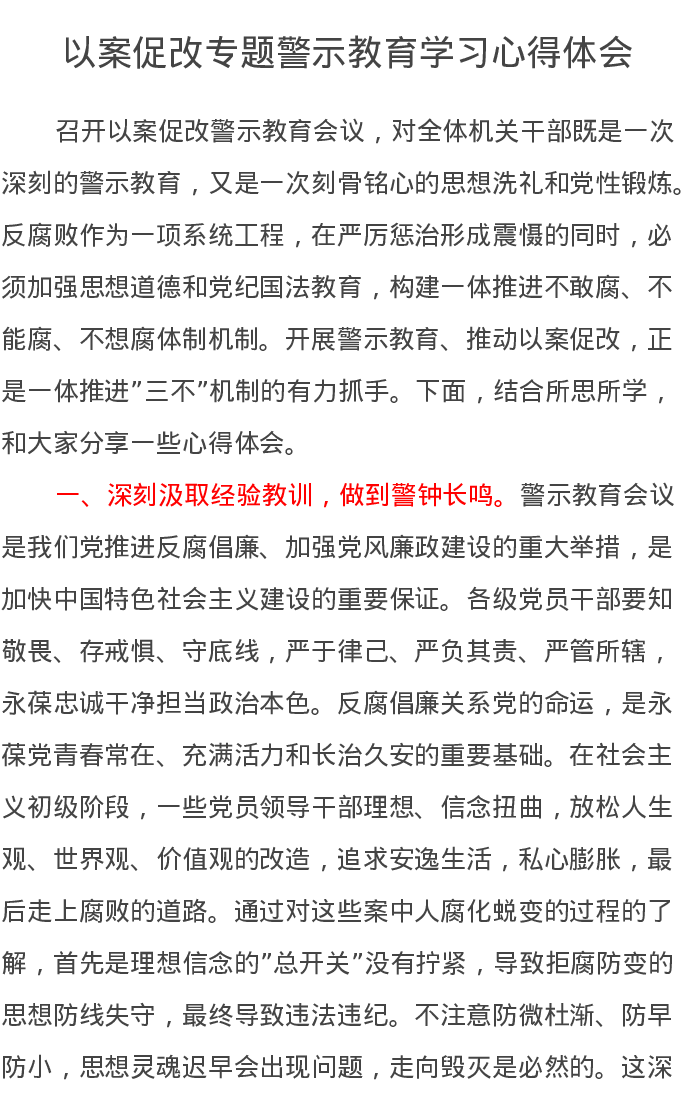 以案促改专题警示教育学习心得体会
