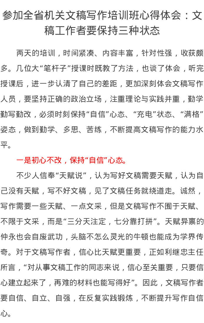 参加全省机关文稿写作培训班心得体会:文稿工作者要保持三种状态