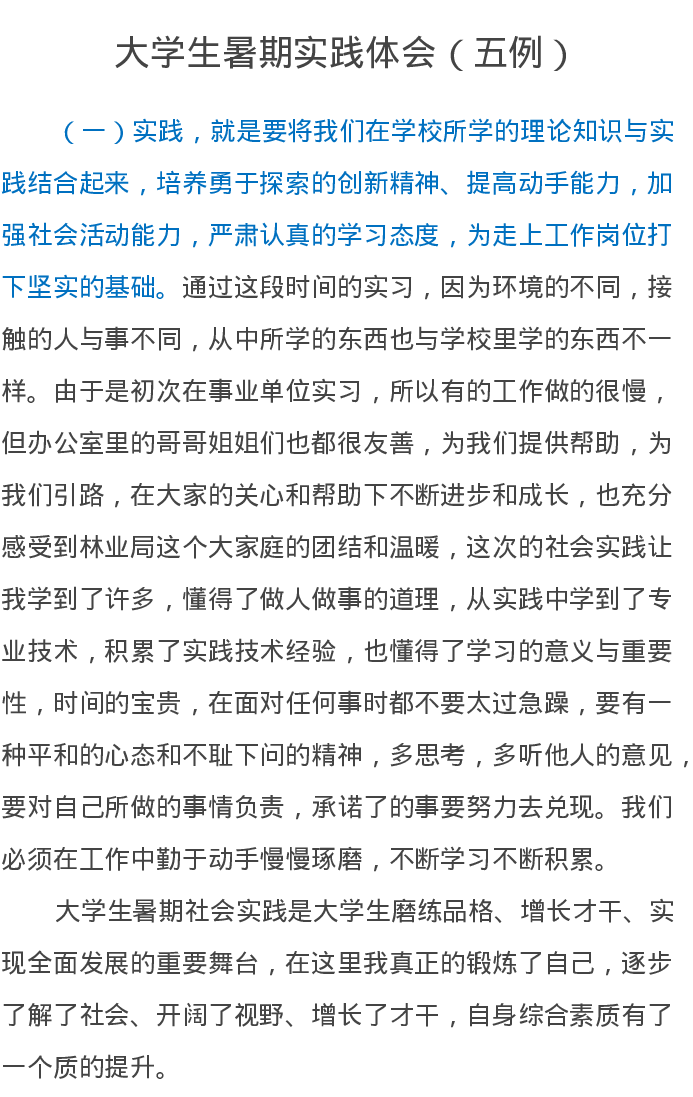 大学生暑期实践体会(五例)