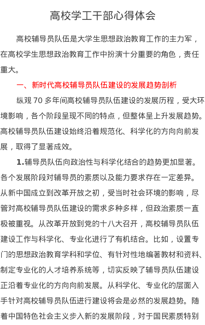 高校学工干部心得体会