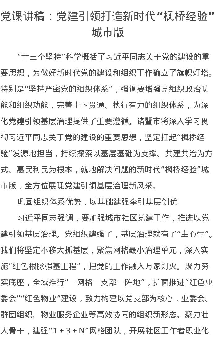 党课讲稿:党建引领打造新时代“枫桥经验”城市版