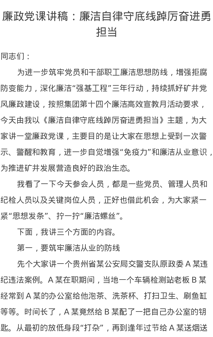 廉政党课讲稿:廉洁自律守底线踔厉奋进勇担当