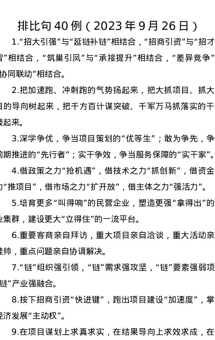 排比句40例(2023年9月26日)