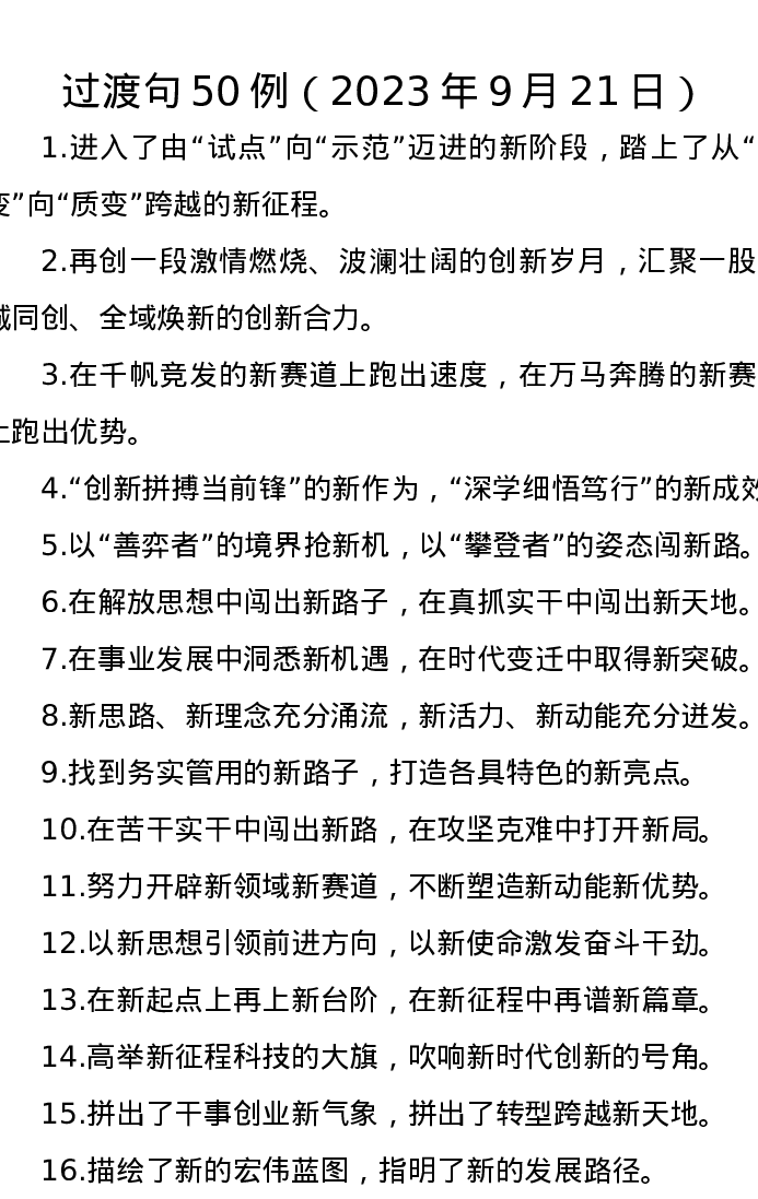 过渡句50例(2023年9月21日)