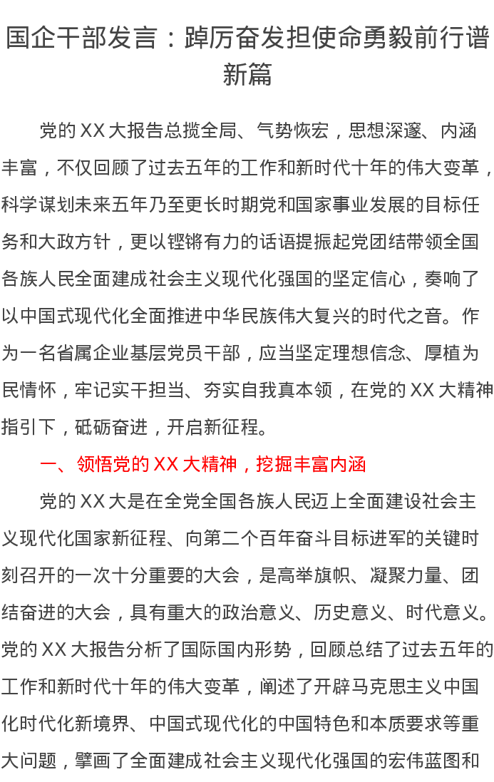 国企干部发言:踔厉奋发担使命勇毅前行谱新篇