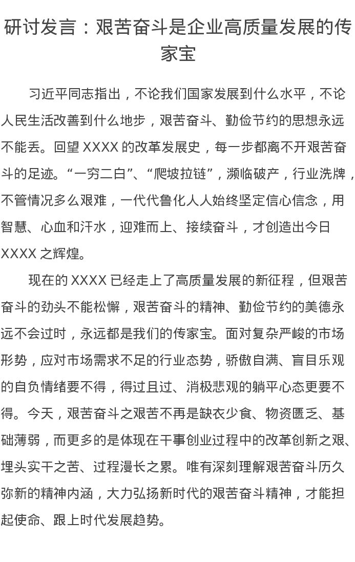 研讨发言:艰苦奋斗是企业高质量发展的传家宝