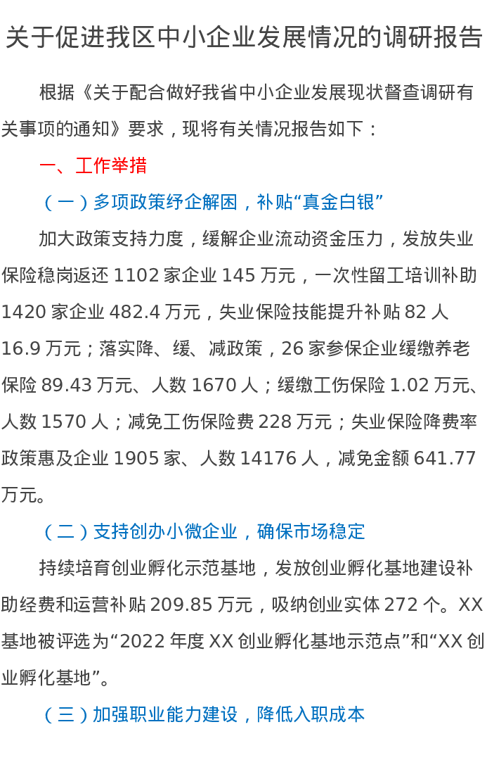 关于促进我区中小企业发展情况的调研报告