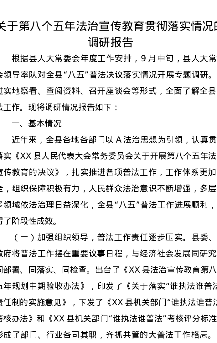 关于第八个五年法治宣传教育贯彻落实情况的调研报告