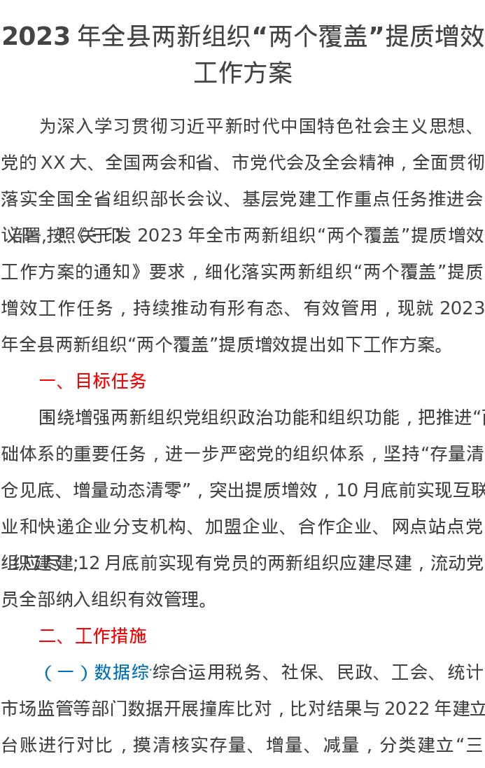 2023年全县两新组织“两个覆盖”提质增效工作方案