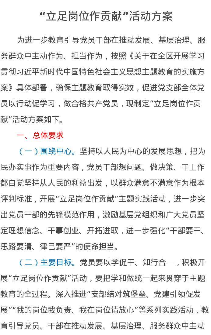 “立足岗位作贡献”活动方案