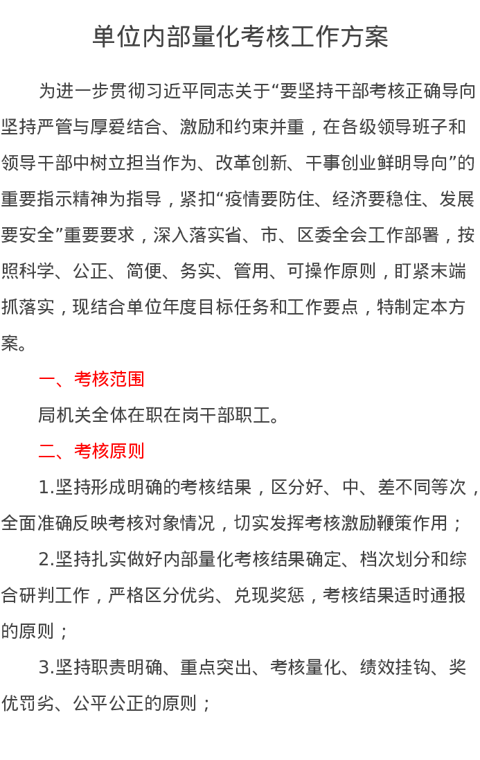 单位内部量化考核工作方案