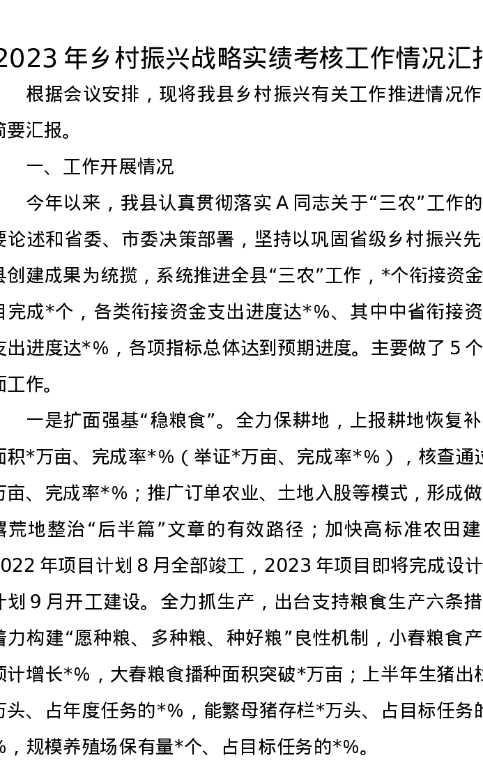 2023年乡村振兴战略实绩考核工作情况汇报