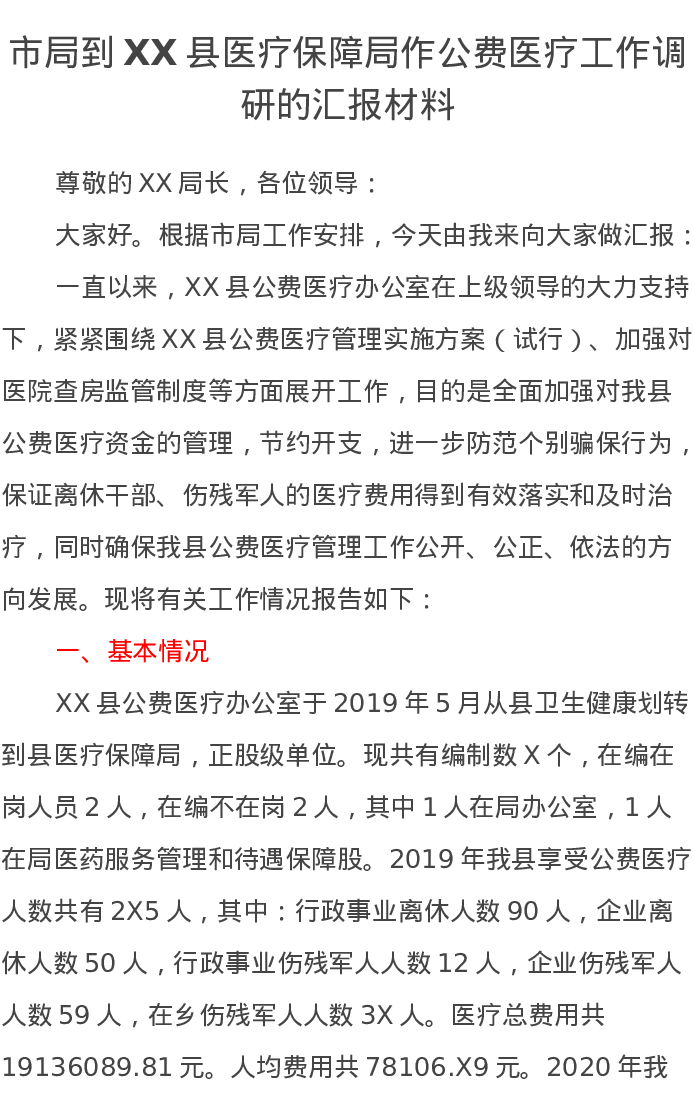 市局到XX县医疗保障局作公费医疗工作调研的汇报材料