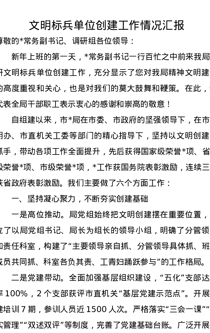 文明标兵单位创建工作情况汇报