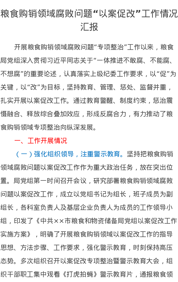 粮食购销领域腐败问题“以案促改”工作情况汇报