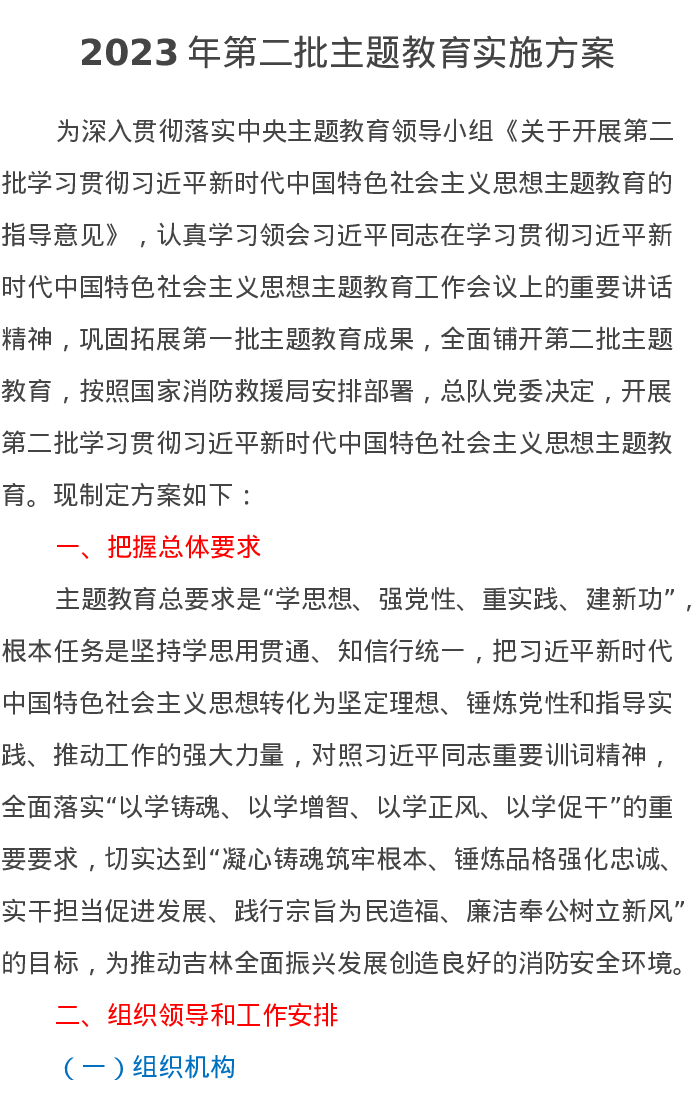 2023年第二批主题教育实施方案(特色社会主义思想)