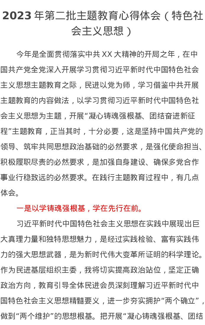 2023年第二批主题教育心得体会1(特色社会主义思想)