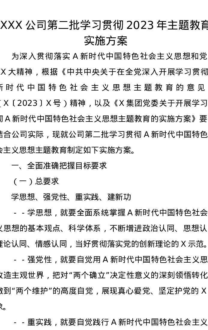 XXX公司第二批学习贯彻2023年主题教育实施方案(特色社会主义思想)
