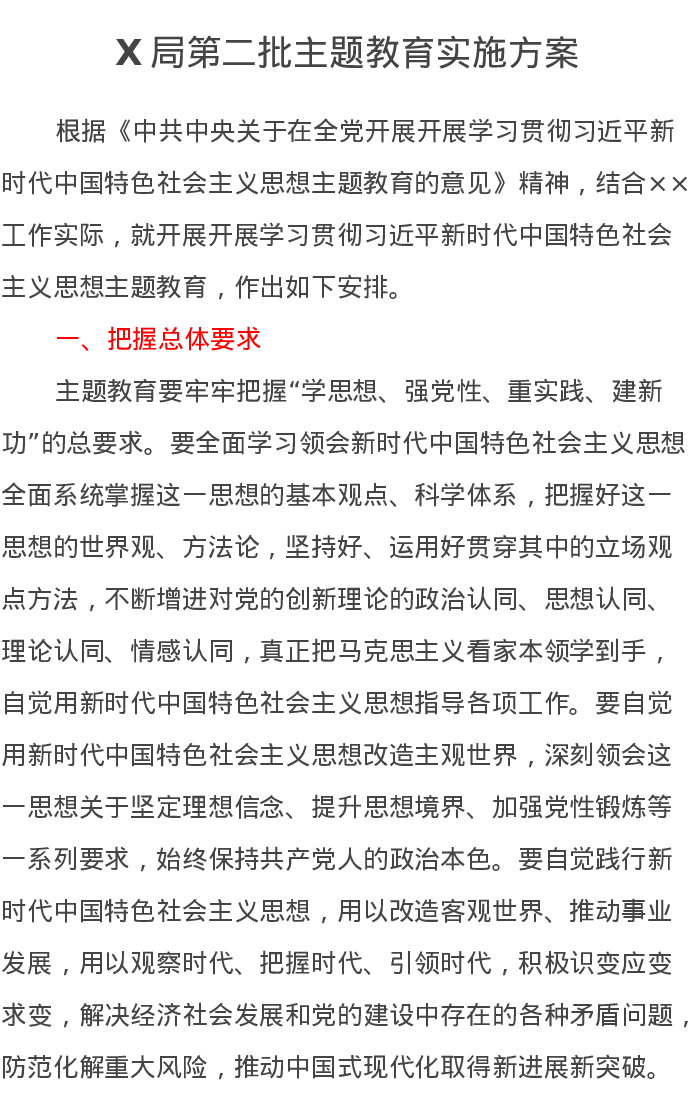 X局第二批主题教育实施方案(特色社会主义思想)