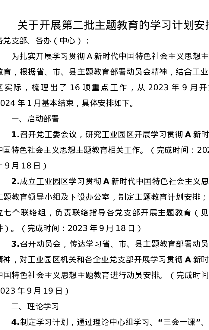 关于开展第二批主题教育的学习计划安排(特色社会主义思想)