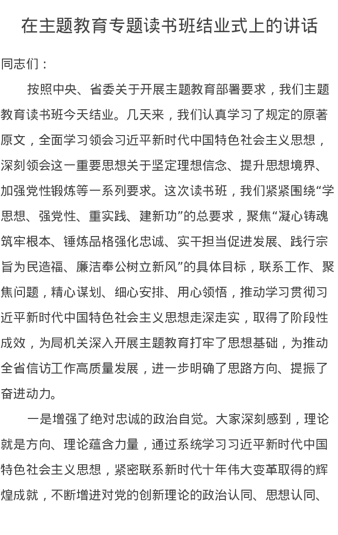 在第二批主题教育专题读书班结业式上的讲话(特色社会主义思想)