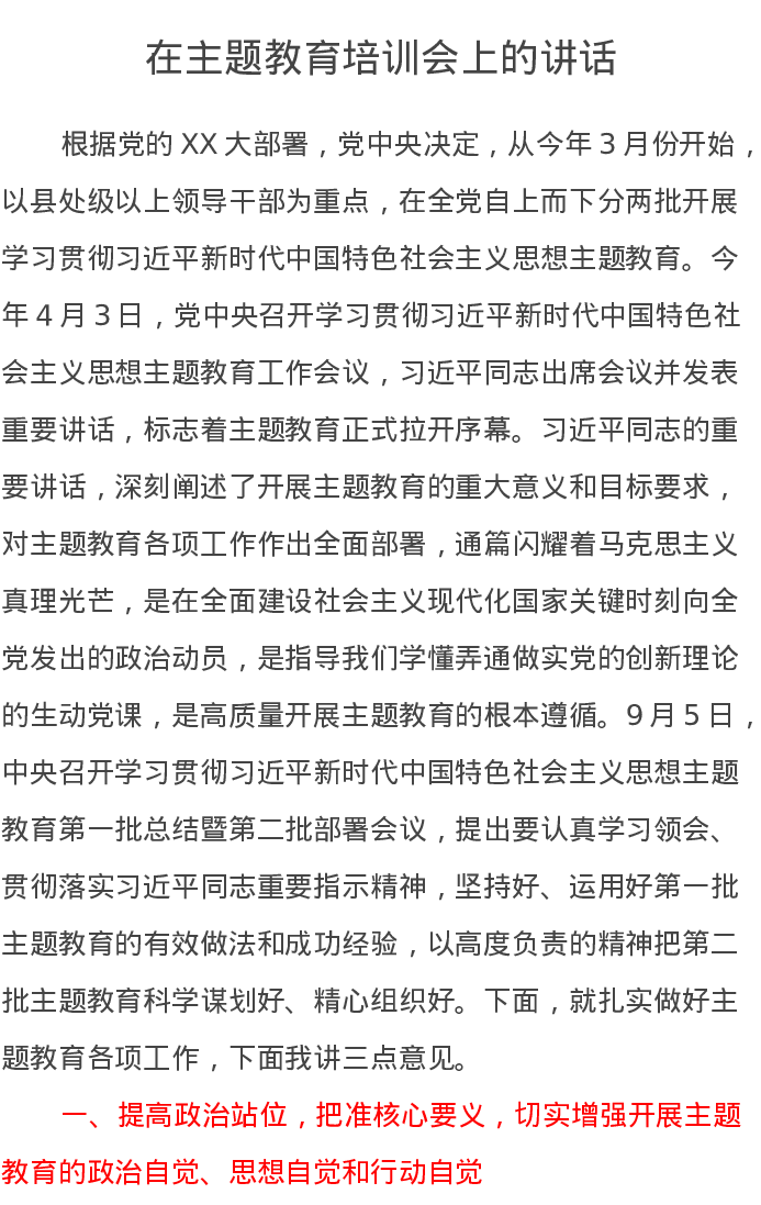 在第二批主题教育培训会上的讲话(特色社会主义思想)