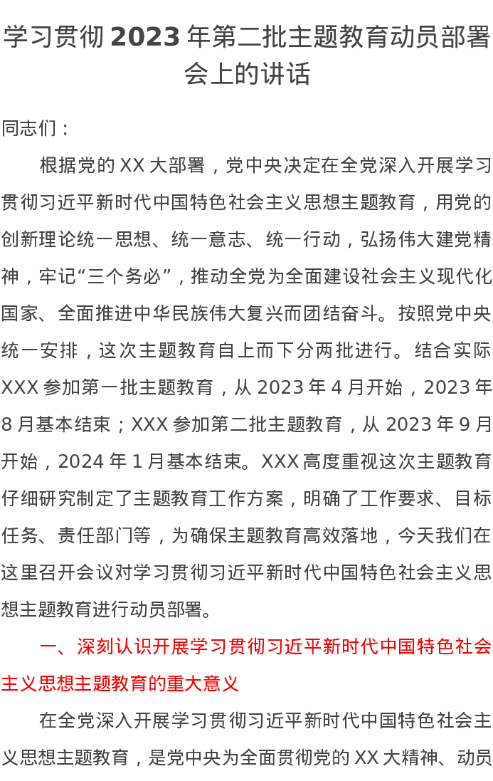 学习贯彻2023年第二批主题教育动员部署会上的讲话(特色社会主义思想)