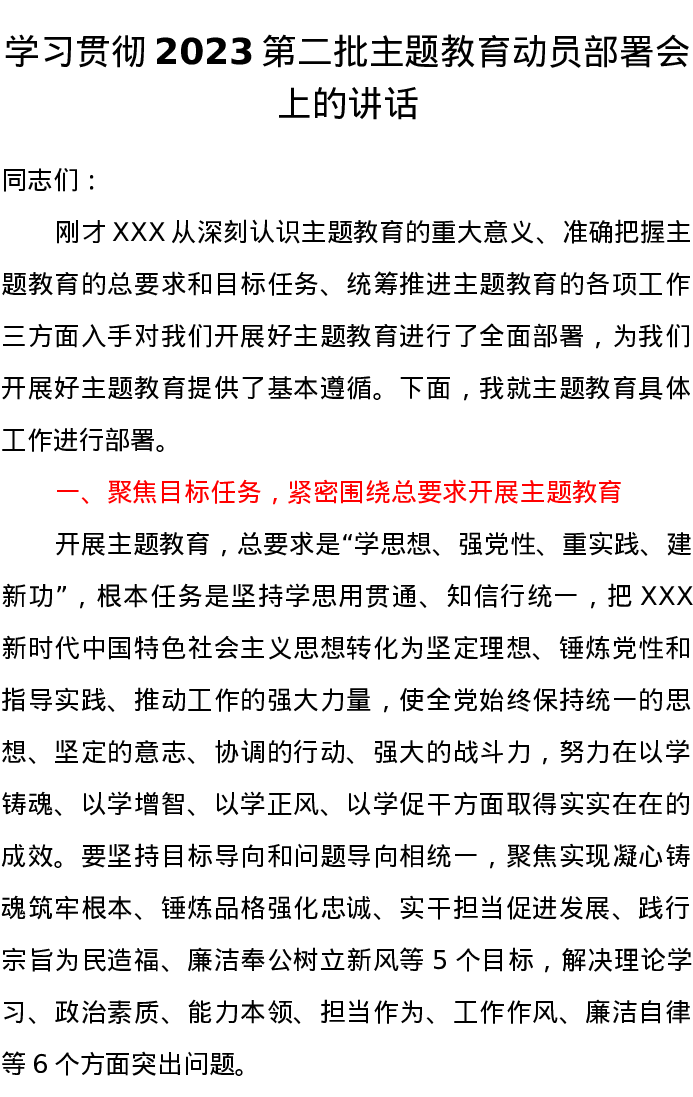 学习贯彻2023第二批主题教育动员部署会上的讲话(特色社会主义思想)