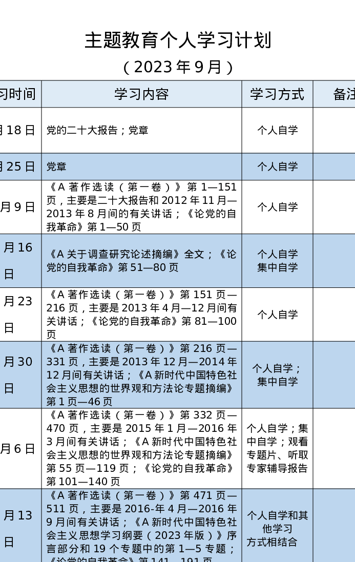 第二批主题教育个人学习计划 (特色社会主义思想)