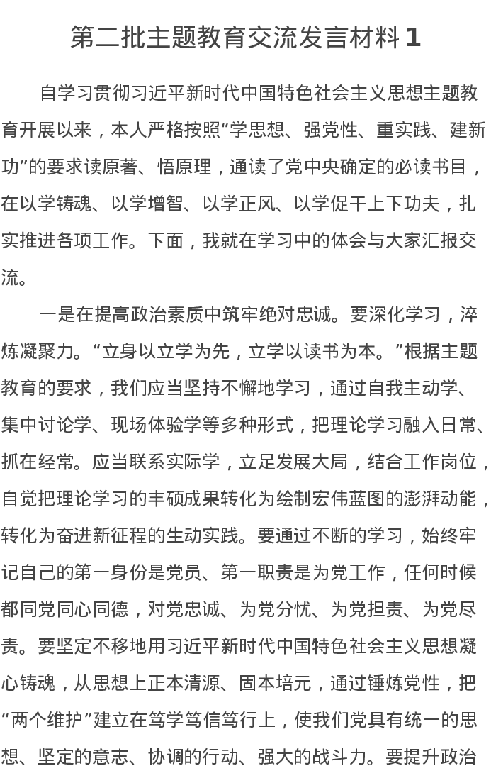 第二批主题教育交流发言材料1(特色社会主义思想)