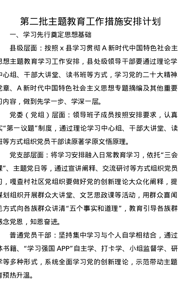 第二批主题教育工作措施安排计划(特色社会主义思想)