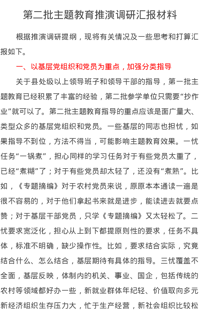 第二批主题教育推演调研汇报材料(特色社会主义思想)