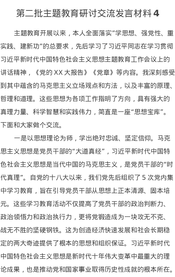 第二批主题教育研讨交流发言材料4(特色社会主义思想)