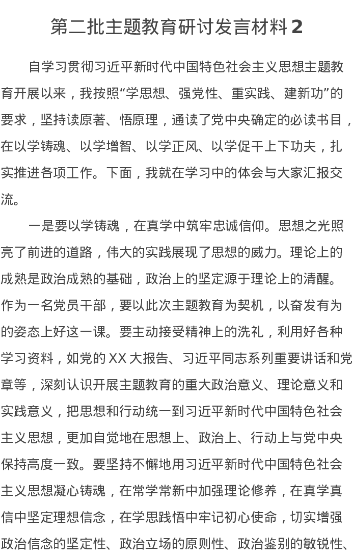 第二批主题教育研讨发言材料2(特色社会主义思想)