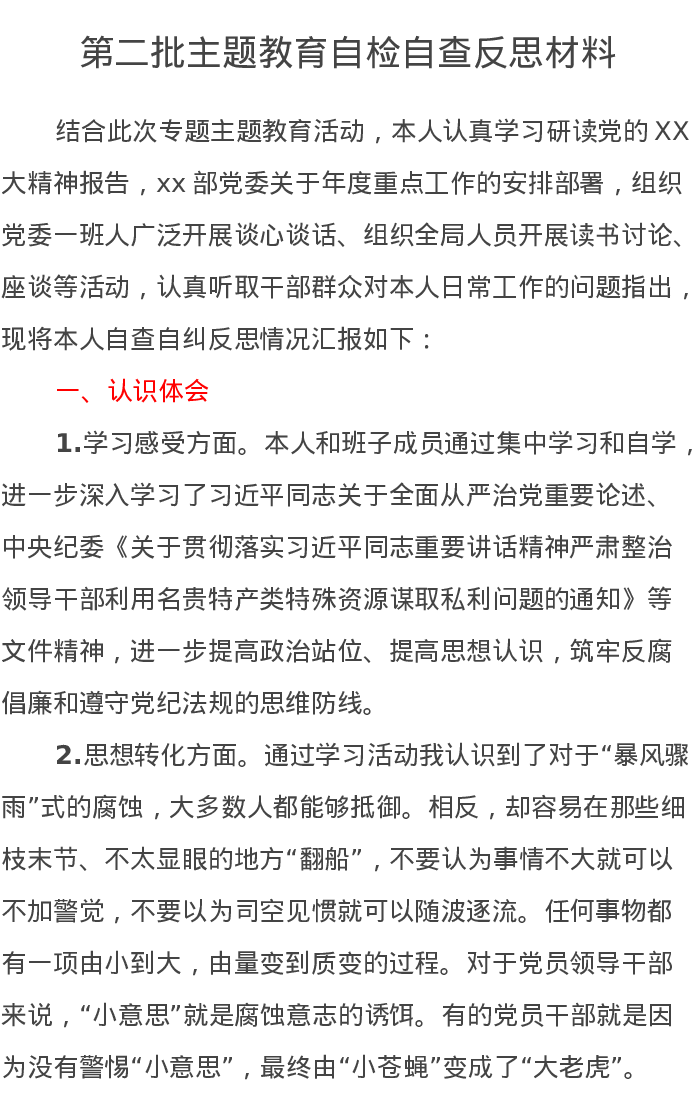 第二批主题教育自检自查反思材料(特色社会主义思想)