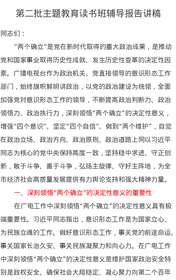 第二批主题教育读书班辅导报告讲稿(特色社会主义思想)