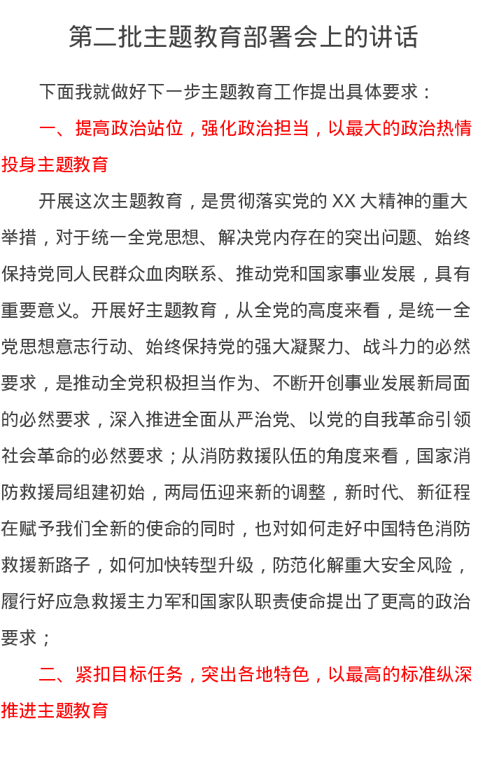 第二批主题教育部署会上的讲话(特色社会主义思想)