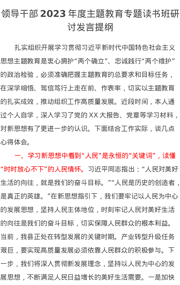 领导干部2023年度第二批主题教育专题读书班研讨发言提纲2(特色社会主义思想)