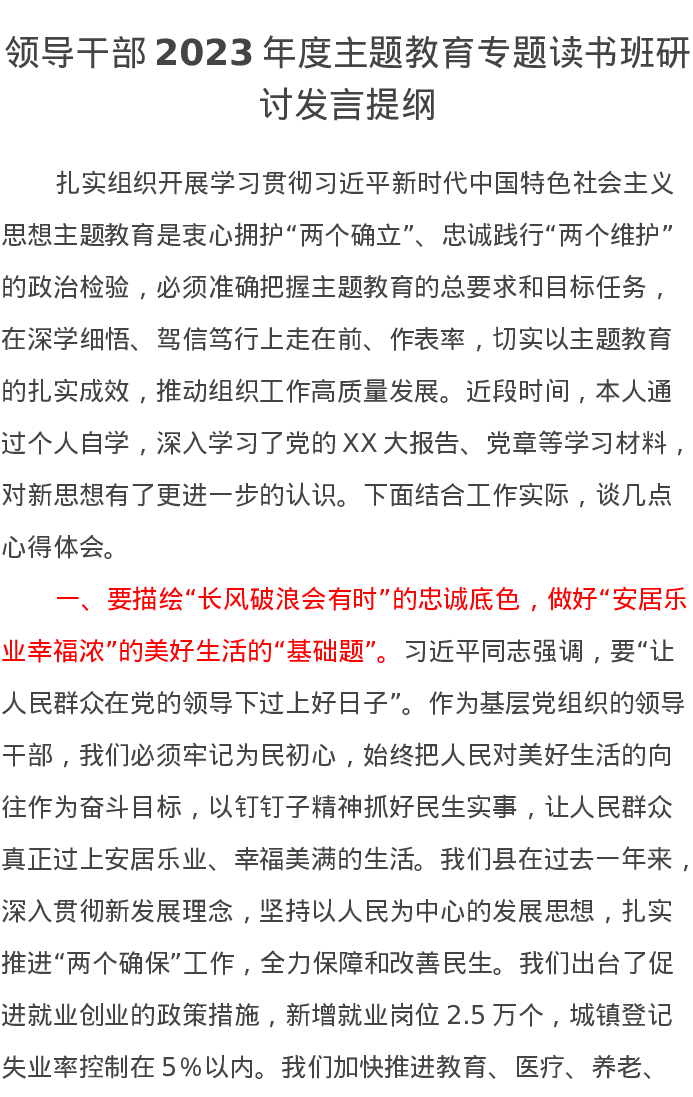 领导干部2023年度第二批主题教育专题读书班研讨发言提纲3(特色社会主义思想)