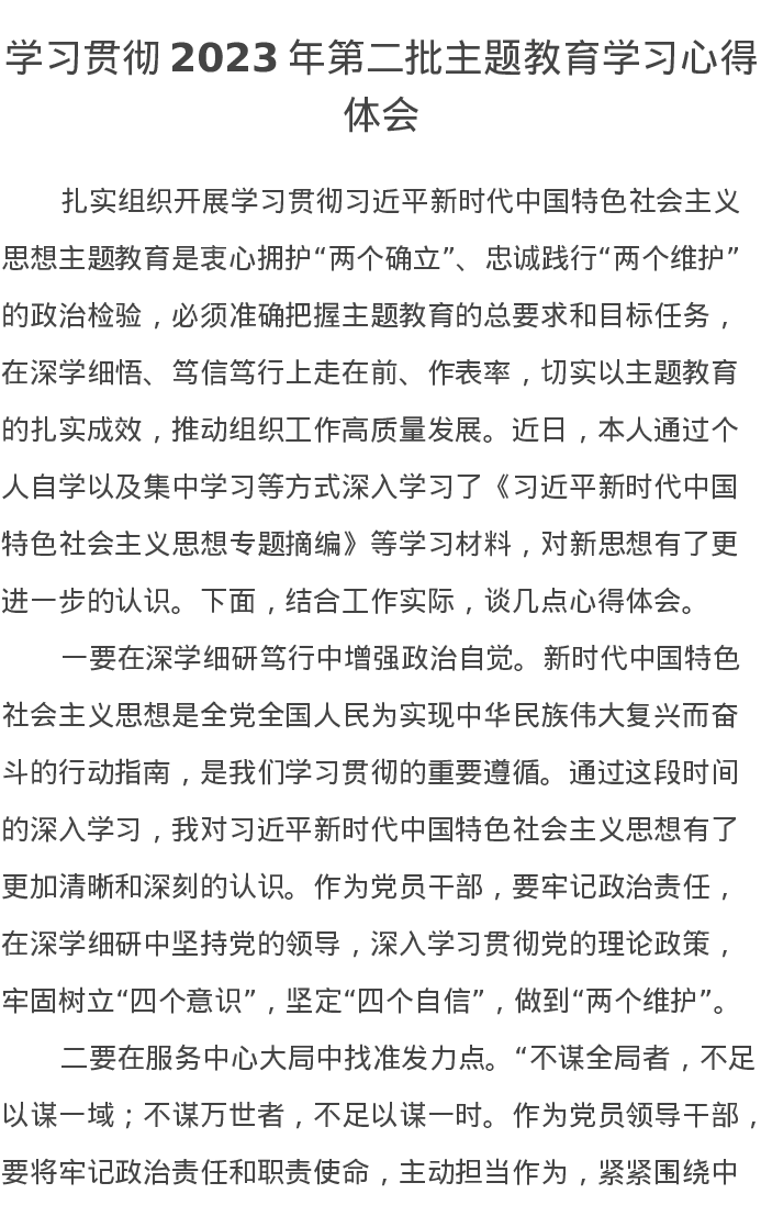 学习贯彻2023年第二批主题教育学习心得体会(特色社会主义思想)