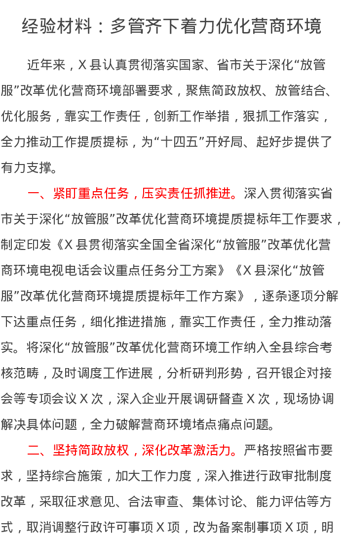 经验材料:多管齐下着力优化营商环境
