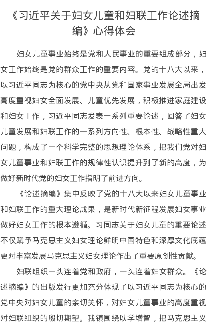 《习近平关于妇女儿童和妇联工作论述摘编》心得体会
