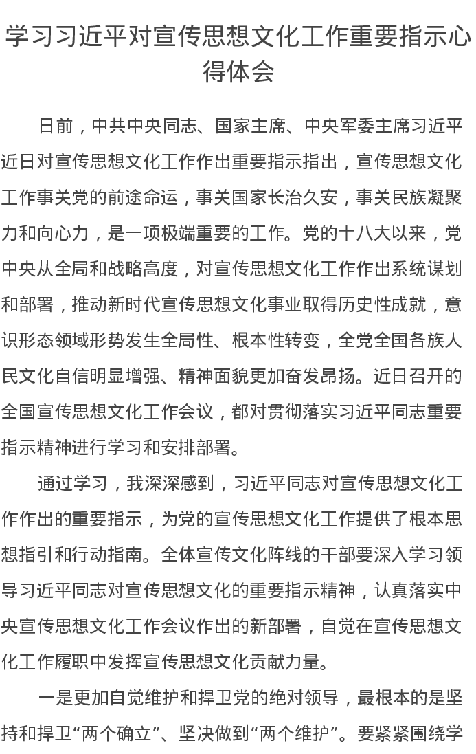 学习习近平对宣传思想文化工作重要指示心得体会