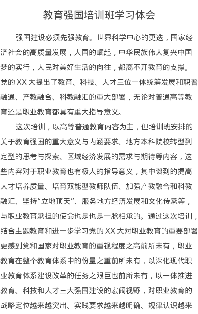 教育强国培训班学习心得体会