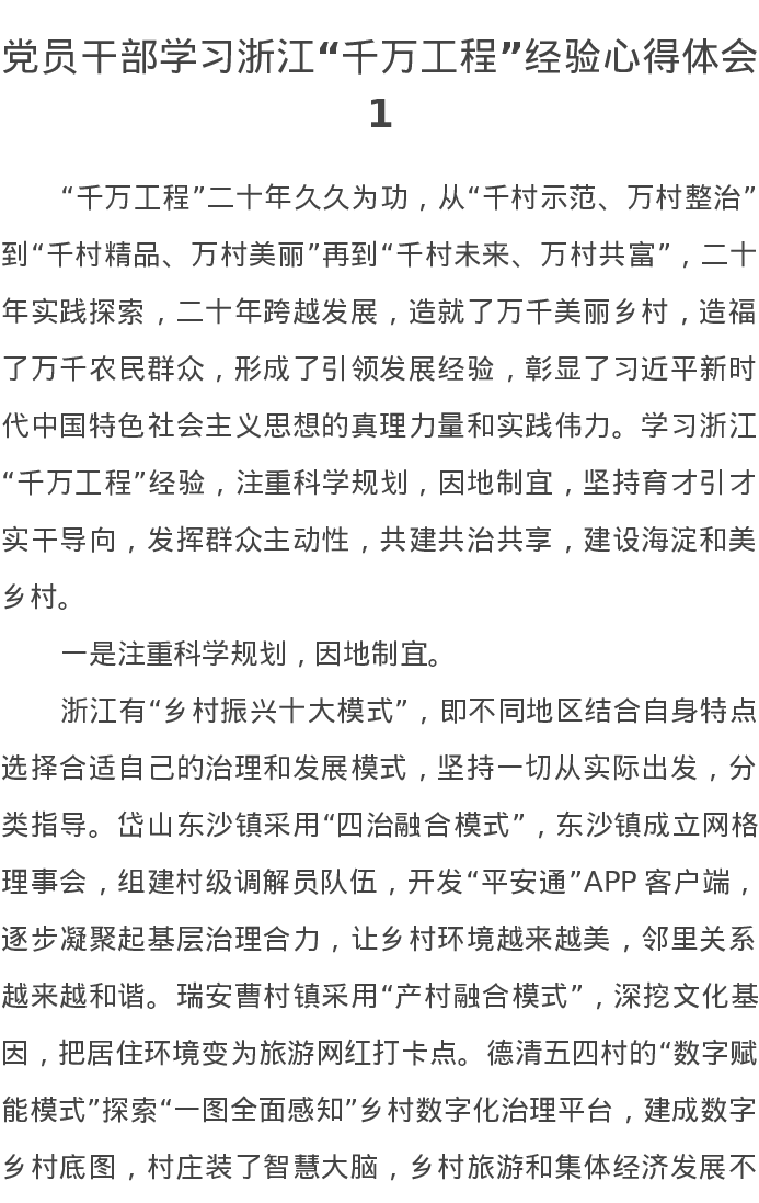 汇编:党员干部学习浙江“千万工程”经验心得体会3篇