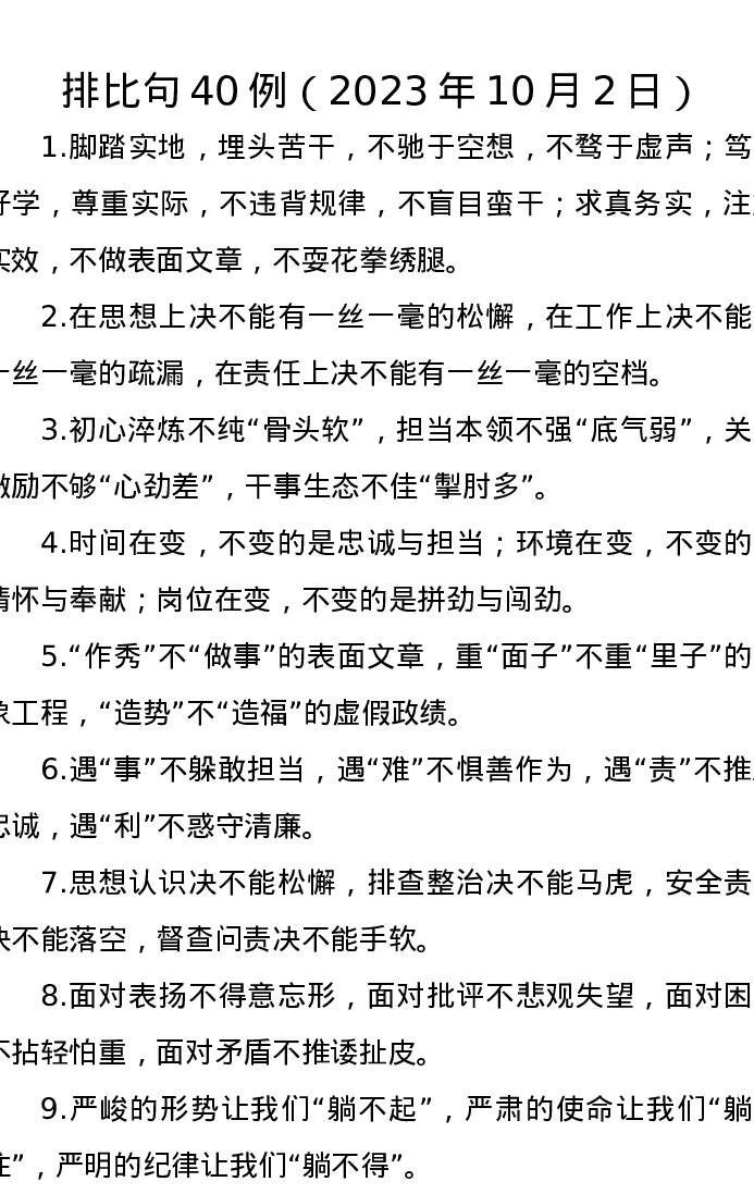 排比句40例(2023年10月2日)