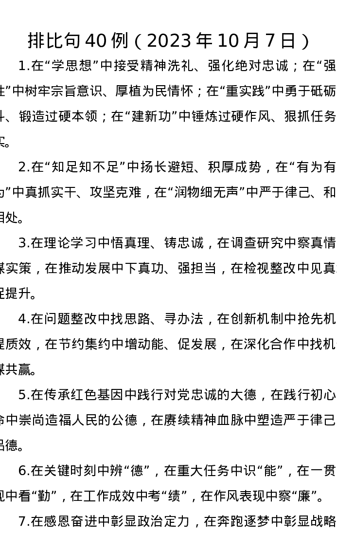 排比句40例(2023年10月7日)