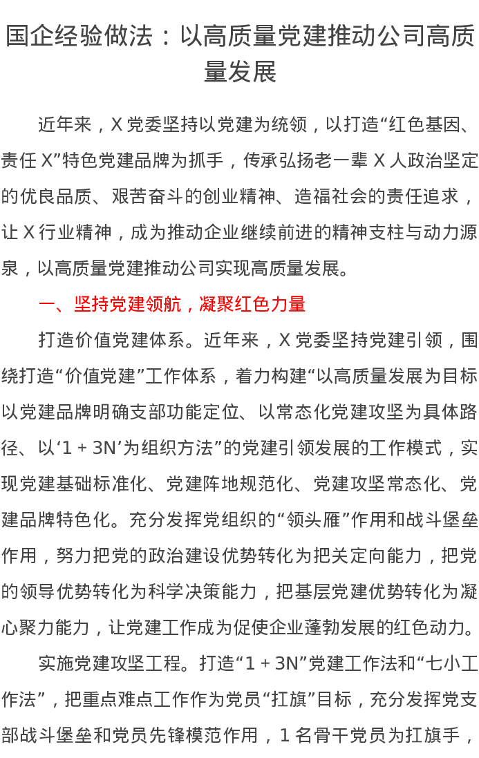 国企经验做法:以高质量党建推动公司高质量发展